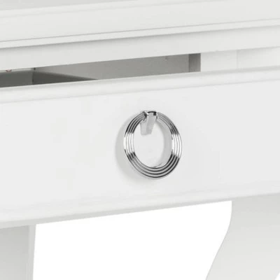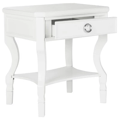 A stay in Belgravia’s most decadent new hotel inspired this modern nightstand. Finely crafted to evoke traditional style with a modern edge, its gently curved legs and chic silver hardware make it timeless. Designers love its ample storage drawer. Constructed from Rubber wood and iron with a NC Coating finish, this night stand is able to hold up to twenty five pounds. The Alaia night stand is the perfect addition for Glam, Traditional or Transitional style interiors.