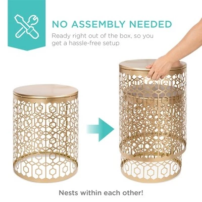 Add something subtle to your living spaces with class and functionality! These tables are the perfect accent for the living room, bedroom, and more, this side table set is a convenient accent that blends into various settings. Elegantly finished iron withstands damage from moisture while a charming finish of gold satin lends itself to any furniture setup. Arrange at your convenience whether together or separate as a fun coffee table setup or on opposite sides of the couch, whatever you choose, the patterns of hexagon and diamond shapes add a charming look to your living space. These tables aren’t simply for decoration, a hassle-free setup guarantees these will be ready to use right away, while 200-pound capacities will stand up to any home decorating challenge!