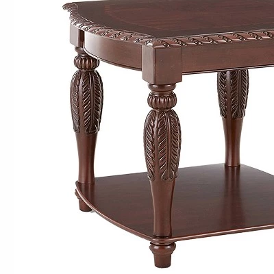 Traditional style meets functionality with this Arabella End Table from Steve Silver Co. This sturdy hardwood end table has intricate carved details around the edges and on the legs for texture and style. It has an open lower shelf that’s perfect for creating more storage or displaying decor. This carved wood end table is the perfect addition to any living space in your home with extra storage space and a flat top that’s perfect for showing off decorative accent pieces.