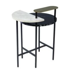 Deals βοΈ Dandelion Round End Table with Faux Marble Glass Top Silver – Aiden Lane β