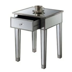 Coupon π Gold Coast Mirrored End Table with Drawer Antiqued Silver/Mirror – Breighton Home π