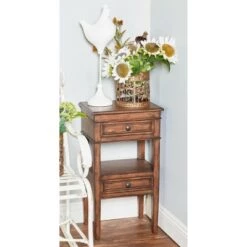 Coupon π― Distressed Wooden Side Table with Drawers – Olivia & May Rustic Brown π