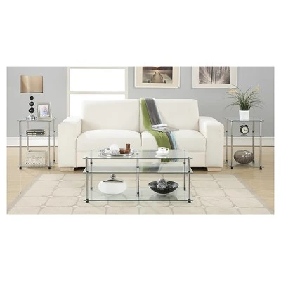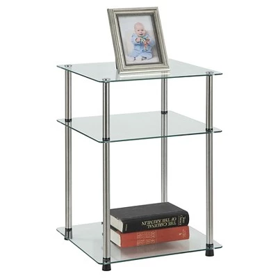 Designs2Go Classic Glass 3 Tier End Table by Breighton Home is the perfect complement to any living room decor. Featuring an open concept modern design that provides 3 spacious glass shelves for decoration, collections or art objects. No tools need for assembly as the stainless steel poles twist together with ease and ensure durability. Surely will provide years of enjoyment