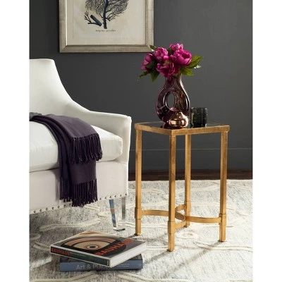The work of Hollywood’s Golden Age set designers inspired this glamorous end table. Designed to bring regal elegance to any room, its decadent antique gold leaf finish creates an ambience worthy of any screen siren. Each end table is uniquely hand crafted by artisans. Constructed with Antique Gold colored iron with Lacquer Coating finish, this end table is able to support up to twenty pounds. The Gellert end table is a great choice for Glam, Mid-Century, or Modern style interiors.