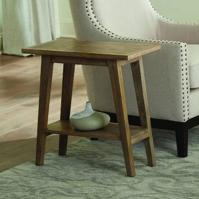 The Milani occasional collection brings the natural beauty and character of wood right into your living room. Crafted of mango solids, the Milani Chairside End Table features a natural finish over mid-century modern styling for a style that combines rustic charm with an elegant silhouette. The solid wood inlaid herringbone top adds interest and the bottom shelf provides space for storage or display. Also available in this collection are the cocktail table, end table and chairside end table (purchase separately). Your purchase includes one sofa table.