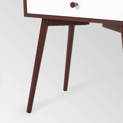 Mid-century modern style meets outstanding function to create an exquisite side table of impressive influence and delightful design. Created with a lovely rubberwood structure, this Christopher Knight Home Newcomb Mid Century Modern Side Table offers incredible stability and design that accents your home with a perfect touch of sophistication. Completed with smooth tapered legs and complementing finish, this charming Christopher Knight Home Newcomb Mid Century Modern Side Table easily ties your decor together with a natural flourish. This table provides two convenient drawers, making this the perfect companion to any bedside or sofa side.