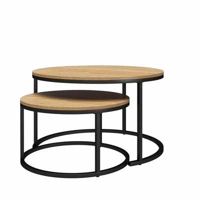 Create an abundance of tabletop space in an instant with the Room & Joy Claret Nesting Coffee and End Table Bundle. The space saving design of nesting tables means youβre ready to entertain at the drop of the hat, and then neatly tuck away the extra nesting tables when the partyβs over. Perfect for dorm rooms, apartments and condos, this bundle features two complete sets for a total of 4 tables! The nesting tables come in a variety of colors to match any dΓ©cor and are made of engineered wood and with steel metal frames. Tables ship flat to your door in one box. Some assembly required. Assembled measurements of Coffee Tables: 31.5β W x 31.5β D x 18β H and 23.6β W x 23.6β D x 13β H. Assembled measurements of End Tables: 18.03β W x 18.03 D x 22.8β H and 11.7β W x 11.7β D x 19.88β H. Each tabletop can hold up to 50 lbs.