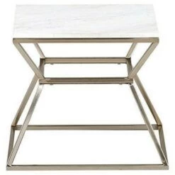 Best Pirce π No Tools 2 Tier Round End Table – Breighton Home Faux White Marble/chrome π