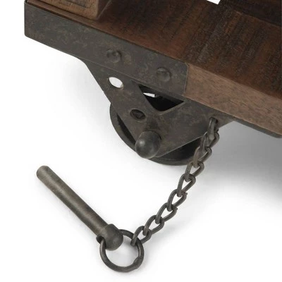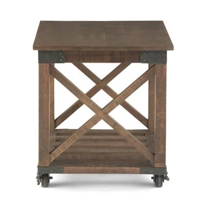 The Barrie End Table pairs the industrial with the rustic to create a distinctive design. Hand-crafted from solid mango wood with iron hardware, this coffee table exemplifies industrial style. Unique iron wheels offer mobility and can be easily locked into place. The open slated bottom shelf offers plenty of storage space and X-side details, bracket corners with rivets round out the design.