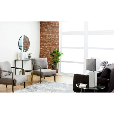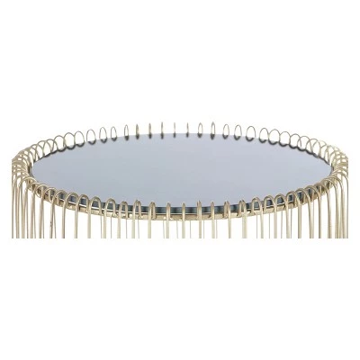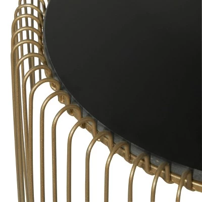 - This contemporary style inspired design round metal and glass accent table features a creative cylindrical design made from painstakingly attaching iron rods to two circular rings and topping it off with a black glass surface