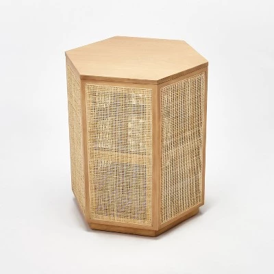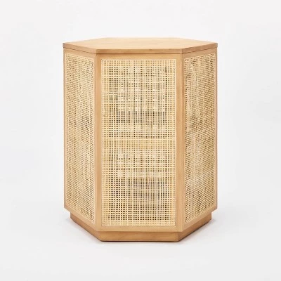 Lend subtle style and retro appeal to your indoor space with this simple yet stylish Lomita Rattan Accent Table from Project 62β’. Crafted with an attractive rattan exterior, this accent table comes with a wood frame and a fun hexagon shape for retro style. The neutral hue of this stylish side table makes for easy blending, while the compact silhouette fits neatly into any corner with ease. The flat tabletop provides a convenient place to rest beverages, snacks or your favorite read.