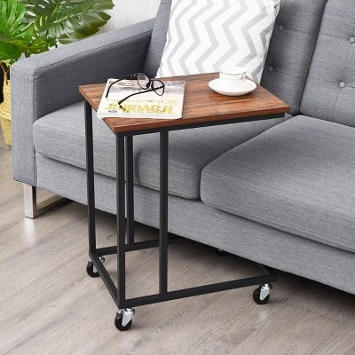 Are you finding a side table for your bed or sofa? Our functional side table is a great choice for you. Made of strong metal frame, the whole side table is stable and durable to use. With four rubber castes, it is not easy to slide if you stop moving the table. And two of the casters have breaks to control easily by yourself. With U-shaped design, the side table can slide into bed or sofa for convenient using. In your living space, the side table is ideal to be a snack table, phone table, lamp table, or decorative display table. Designed in concise and rustic style, the side table fits for any kind of decoration and will bring a breath of fresh air into your home with its extraordinary furniture. . Specification: Color: Black . Materials: Wood and Iron. Product Size: 20ββ(L) X 14ββ(W) X 24ββ(H) . Product Weight: 10.5 lbs. Weight Capacity of Tabletop: 55 lbs. Package include: . 1 X side table. 1 X instructions.