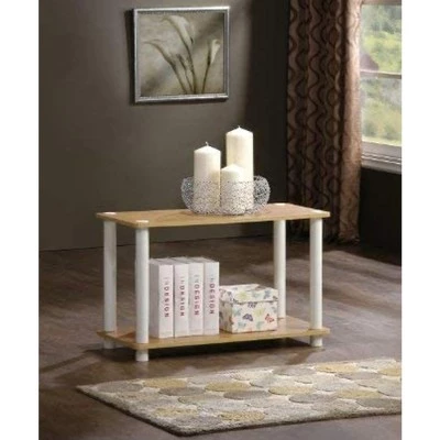 Be space efficient, organize your essentials, and add simple style into any room of your home with the Furinno Turn-N-Tube Rectangular Shelf End Tables. These modern end tables stand 15.9 inches tall and can hold fun decor items, garden plants, or can be used to store magazines and books beside the sofa. Use these stylish, versatile shelving units in your living room or bedroom to help keep your essentials organized and at arm’s length away. Designed with round edges, these beech and white end tables are constructed with beautiful, sleek composite wood and prevent snaps or scratches when walking by. The main parts of Furinno products are constructed from particleboard that is sourced from Malaysia and made of recycled materials from rubber trees, recyclable PVC tubes, and non-woven bits that are all environmentally friendly. Have your favorite items out for display and organized neatly on the Turn-N-Tube 2-Tier Rectangular Shelf End Tables from Furinno.