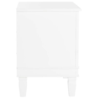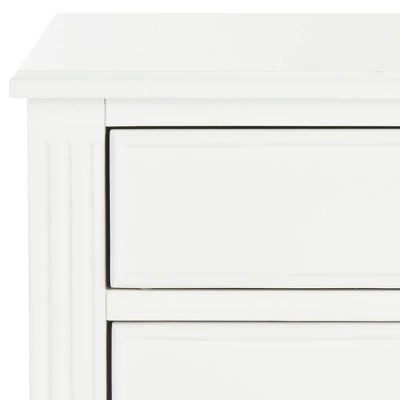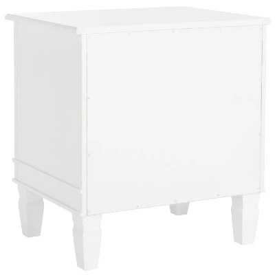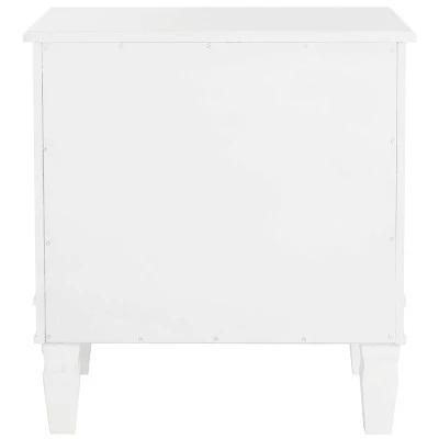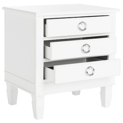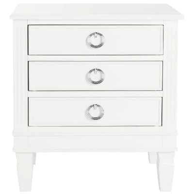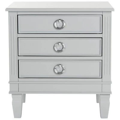 Bring the charm of the legendary Paris’ brocantes to any space with this classic nightstand. Crafted with French style wood details and chic silver pulls on its ample three drawers, its quintessential hue makes a graceful statement in any boudoir. Strikingly simple, this hardworking piece maximizes storage with its three pullout drawers. Constructed from Rubber wood and chrome colored iron, this night stand is able to hold up to forty five pounds. The Kira side table is the perfect addition to Glam, Traditional or Transitional style décor.